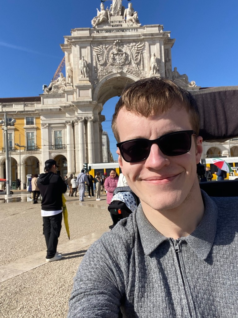 Sunday was the day that, supposedly, was the best weather wise, and indeed that morning the sun was out for the first time. We again made our way down into the city centre, walking a different route this time to see more of downtown Lisbon, before making our way up some steep roads to visit Lisbon Cathedral, which is a gorgeous building. Lisbon is known as ‘the city of seven hills’ given it is built around seven hills, which does make accessibility somewhat of a challenge, and one that was too much for my chair as we tried to venture to the old neighbourhood of Alfama, as when the rain started to fall we gave up on our pursuit. I must give a massive shoutout to my carer Clinton, who helped get me up and down many kerbs and pushed me up some very steep roads. On our way back we again stopped at Praca do Comercio, this time bathed in sunshine, and the views were even more spectacular than they had been on Friday. There was still time to try a Portuguese delicacy, Pastel de Nata, which is a sweet custard set into pastry, although it’ll come as no surprise to those of you that know me that I wasn’t a fan.